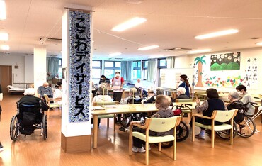 広々としたデイルームの明るくあたたかい雰囲気は利用者様のみならず、ご家族様やケアマネジャー様にも大変好評です。1日の流れとしては午前中は主に入浴、午後は個別機能訓練やレクリェーションを行っています。様々な季節の飾り付けも利用者様の力をお借りし全員で作り上げています。皆様の生き生きとした笑顔や真剣な表情、様々なお顔を拝見しながら私も楽しく仕事をしています。